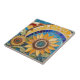 "flores de girasol amarillas", "girasoles en verde oscuro", "turquesa verde azul naranja, "arte de mosaico al estilo de gaudí", "diseño inspirado en van gogh", "jardín de verano", "cabeza de flor decorativa", "azulejos de cerámica floral ornamental", "arte abstracto", "curvas de arco de arco"
