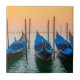 Tranquila ubicación junto al Doge's Palace de Venecia, Italia, con cuatro góndolas, todas juntas que dan a una hermosa puesta de sol niebla.
