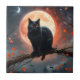 Azulejo Aterrador Halloween Black Cat Moonlight,