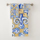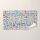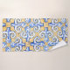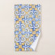 Las baldosas tradicionales pintadas a mano crean un diseño único. Pintura de azulejo español con motivos geométricos azules y amarillos. El diseño decorativo perfecto, la decoración casera ideal o el regalo para cualquier ocasión.