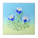 Baldosas de cerámica con hermosas imágenes de flores de croco azules. La imagen y el fondo se pueden personalizar. Obra de arte original de W.B.