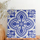 Azulejo Azul Rústico Blanco Floral Decorativo