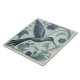 Tonos de color azul índigo y verde menta Baldosas de cerámica Hummingbird inspiradas en los movimientos Art Nouveau y Arts and Crafts con un fondo floral. Perfecto para un regalo de la casa que se utiliza como tribuna o para añadir una baldosa decorativa en su propio embaldosado. El azulejo de cerámica es suave, con un efecto 3D falso. Esta es la baldosa orientada a la derecha. Póngalo en pareja con la baldosa orientada a la izquierda para una decoración de baldosas simétricas.