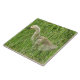 Canadá Goose Gosling in the Grass Ceramic Tile. Esta única gansa canadá era la única que la pareja de gansos adultos había dejado de su cría y ambos gansos padres estaban cerca vigilando a esta pequeña gallina mientras perseguía bichos en el borde del lago.