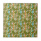 Esta baldosa cerámica tiene un diseño moderno de mediados de siglo de rectángulos verdes redondeados con agujeros sobre un fondo de rayas de colores modernos de mediados de siglo. Si te gusta el diseño pero prefieres colores diferentes, envíame un mensaje.