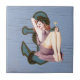 Azulejo barco costero azul y chica de la fiesta de la pisc