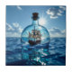 Un barco en una botella flotando en el mar. Un impresionante ilustracion para los amantes de los deportes náuticos en la cocina, en la playa o en el baño.