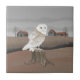 Colourful artwork of a barn owl in the English countryside, with old barns in the background. Perfect for anyone who loves folk art.