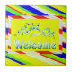 AZULEJO BIENVENIDOS DISEÑO AMARILLO CON TEXTO DE PLATA