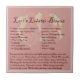 Estas baldosas están disponibles en 2 tamaños, 4,25’ x 4,25 o 6"x 6". Amarrarlos a su nueva salpicadura de espalda como acentos; añada un marco y es trivet o en una bonita caja de conservas de tejas que seguro sorprenderá y deleitará. Atrapado para una idea para la cena, cada azulejo muestra una receta diferente de sopa a postre. Estas baldosas decoradas, divertidas y extravagantes, se pueden adosar con tramas trivet o con una bonita caja de tejas. Dales como regalos o guárdalos por ti mismo. Todo está bien.