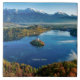 Bled Island, Slovenia picturesque photograph with church, lake, and majestic mountains