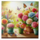 Podrá pasear por un jardín mágico con este diseño animado, que exhibe una vibrante variedad de macetas y flores. Con mariposas que revolotean bailando por encima y un brillante telón de fondo, esta pieza irradia brillo y alegría, perfecto para agregar un toque lúdico y encantador a cualquier espacio.