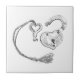 Dibujo de pluma y tinta de un candado en forma de corazón y de una llave en una baldosa decorativa. Pintura: Lápiz y tinta sobre papel. Derechos reservados Dominic A. White. Todos Los Derechos Reservados.