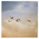 Este diseño presenta una imagen de un rebaño de aves volando a través de un cielo azul turbio. La luz del sol fluye a lo lejos. Los animales en vuelo pueden ser vistos como símbolos de libertad o simplemente como una bella vista.