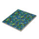 Cubierta cerámica con elegante estampado floral, arándanos y hojas verdes. Diseño texturado elaborado a partir de un collage de papel tisular hecho a mano. Paleta de colores: Classic Chambray Chathams Cerulean Blue, Olive Sycamore Chartreuse Asparagus Green, © Clipso-Callipso / Julia Khoroshikh, 2019 www.clipsocallipso.art #classicblue #pantone2020 #blueandgreen #blueberries #floralPattern #clipsocallipso #zazzlemade #ceramictile #decoración de baño #bañoIdeas #decoración de cocina #cocinaenideas #decoración de paredes