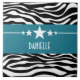 El moderno y moderno Sassy Star Zebra Tile presenta un fondo de moda de cebra en blanco y negro y un atrevido borde azul real adornado con un divertido motivo estrella. Este diseño ondulado puede ser personalizado con el texto personalizado de su elección. Haga clic en "Personalizar" para encontrar más opciones de personalización.