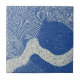 Ceramic Tile - Textured blue and white abstract pattern with woodcut-style lines, concentric circles, and flowing wave forms. Ideal for modern art lovers, minimalists, and those drawn to Japanese-inspired designs.