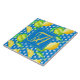 Añada las iniciales del primer nombre de la novia y el novio (letras pequeñas) y el apellido inicial (letra grande) del matrimonio conjunto para crear un elegante regalo de monograma para la pareja recién casada. El patrón aquí es un impresionante diseño de limoneros amarillos y verdes contra un hermoso fondo con motivos oceánicos azules y blancos.