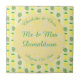 Esta impresionante baldosa presenta un patrón de frutas tropicales de piña amarilla con topes verdes y hojas de palmera verde pálido en bonito. Ideal para un Boda de verano o de temática tropical. Hay un círculo amarillo con patrones de mármol blanco en él que contiene texto de personalizable para que puedas personalizar este diseño.