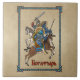 Representación de una batalla entre un bogatyr ruso y un guerrero asiático, ambos a caballo. También aparece un texto en cirílico (ruso) que dice "Б о г а ы р" (Bogatyr). Bogatyri son personajes heroicos encontrados en épicas eslavas medievales. Son similares a los caballeros andantes de la literatura occidental. La mayoría de las historias sobre bogatyri giran alrededor de la corte de Vladimir I de Kiev (958-1015). Se presume que algunos bogatyri son figuras históricas. Bogatyri protegía la tierra y el pueblo rusos contra los invasores, especialmente los tártaros. A algunos se les atribuían poderes y fortalezas que eran casi divinos. Esta imagen se adapta a un ilustracion de dibujo de línea blanca y negra en "П о в е с ь・ sni Bursa Burn Bursa Burn BurnBurn" (Un cuento de héroes brillantes BurnBurn BurnBurn Burn BurnBurnBurn" (Una historia de héroes brillantes". Ciudad Kiev y el gran azote de la tierra rusa) de Tamara Likhiotal; publicado en la URSS en 1974.