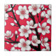 A striking digital floral artwork featuring crisp white cherry blossoms on a vivid red background. This high-contrast design brings drama and beauty to any modern decor