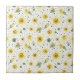 Fresh botanical floral pattern ceramic tile featuring illustrated yellow and white daffodils with green leaves, paired with modern sage green circles and playful black dot accents on a crisp white background. The mix of floral illustration and retro-inspired geometry creates a stylish, contemporary look. Ideal for floral art lovers, modern décor fans, and botanical design enthusiasts. A thoughtful gift for gardeners, creatives, and lovers of clean, artistic patterns, perfect for spring styling, Easter season, and everyday modern décor.