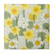 Fresh botanical floral pattern ceramic tile featuring illustrated yellow and white daffodils with green leaves, paired with modern sage green circles and playful black dot accents on a crisp white background. The mix of floral illustration and retro-inspired geometry creates a stylish, contemporary look. Ideal for floral art lovers, modern décor fans, and botanical design enthusiasts. A thoughtful gift for gardeners, creatives, and lovers of clean, artistic patterns, perfect for spring styling, Easter season, and everyday modern décor.