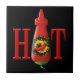 Letras CALIENTES con el O hecho con una botella de salsa de pimienta.