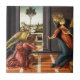 Tapa de la Anunciación de Botticelli. Pintura de Tempera en el panel de 1490. Sandro Botticelli fue uno de los grandes pintores religiosos del primer renacimiento. Anunciación es una de sus pinturas más conmovedoras y presenta al ángel Gabriel anunciando el nacimiento de Cristo en la Virgen María. El ángel tiene alas doradas y lleva un manto rojo suave con mangas doradas y un largo tallo de lirios. Un regalo de bonito para los aficionados a Botticelli, el arte del Renacimiento Temprano y las pinturas cristianas.