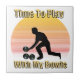 En un estilo vintage se ve una petanca con tazones y las palabras tiempo para jugar con mis bolos.
