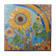 Azulejo Bright Summery Sunflower Faux Mosaic Sky Blue