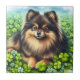 Azulejo Brindle Pomeranian Watercolor Clover Shamrock