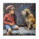 Esta interpretación de pintura de los años 1920 retrata a un niño y a un perro callejero en las calles de Brooklin.