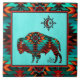 Brilla tu casa con esta "Una de las clases" de la foto de Búfalo del Suroeste. Cuenta con un búfalo y un sol suroeste en un fondo turquesa... Rodeado por un borde suroeste en turquesa, Naranja y negro!