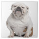 Azulejo Bulldog inglés, sentándose delante de blanco