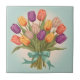 Buqueta de tulipanes de primavera vintage con baldosas cerámicas de cinta.