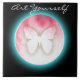 Burbujas de mariposa es un diseño de arte digital con fuego rosa y blanco, burbujas en círculo con forma de mariposa cortada y borde exterior azul brillante.