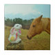 Azulejo Caballo amarillo rubio y conejo de Pascua