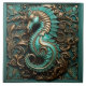 Azulejo Caballo de mar Verde azulado y acuático de la vida