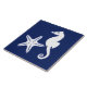 Azulejo Caballo de mar y pez estrella - azul marino y blan