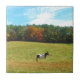 Azulejo Caballo marrón y blanco, árboles de otoño, cielo a