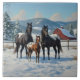 Azulejo Caballos Appaloosa negros en una granja en inviern