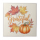Celebre la belleza del otoño con esta baldosa de cerámica "Grfatídica", con una calabaza rústica rodeada de coloridas hojas caídas. Un encantador acento de temporada para la decoración de su casa o un sincero regalo para las celebraciones de Acción de Gracias y cosecha.