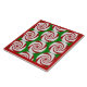 Si tomamos las losas de caramelo rojo y blanco y, en lugar de torcerlas, sólo las rompemos y las rebanamos, entonces en lugar de los bastones de caramelo obtenemos las clásicas gotas de menta. ¡Y qué patrón de bonito hacen! Ponga esta baldosa en la mesa de su comedor para evitar que un plato caliente dañe el acabado fino.