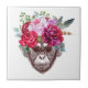 Este diseño presenta un bonito retrato de un mono adornado con flores de colores.