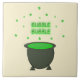 Esta impresionante baldosa presenta una imagen gráfica de un caldero gris. El caldero está lleno hasta la cima con una poción verde hecha por una bruja. La poción está saliendo del caldero y ha formado la palabra "burbuja" que aparece dos veces por encima del brebaje de aspecto venenoso.