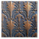 Patrón floral Art Deco con una flor de argenta celosia de color cobre sobre un fondo azul, diseño simétrico, estilo vintage, elegante y decorativo, detalles intrincados, elementos botánicos estilizados.
