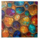 Obra de arte cautivadora y abstracta que se asemeja a las coloridas células interconectadas o al vidrio manchado con bordes dorados y texturados.