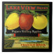 Here is a Ceramic Tile, from LAKE VIEW, displaying a vintage image of a Produce Crate Label used by a group of California growers in the early to mid 1900s, artist unknown. This square tile is available in two sizes: 4.25 inches square or, as shown here, 6 x 6 inches square . ►The art image cannot be removed but may be adjusted. ►►The Black border was created by color-matching a color in the image and may be changed (using the Background menu item) to your preferred color. The border allows the full image to display on the tile. Suitable for framing individually or grouping with other tiles for a decorative application to a wall, table, etc. Makes a great gift, combine with other similar tiles (for a produce business, home bar, etc). ►May also be available on other products in separate listings.