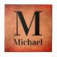 Diseño minimalista en texto negro con plantillas para agregar tu nombre e inicial para hacer un regalo personalizado simple. Color de fondo texturizado rojo.